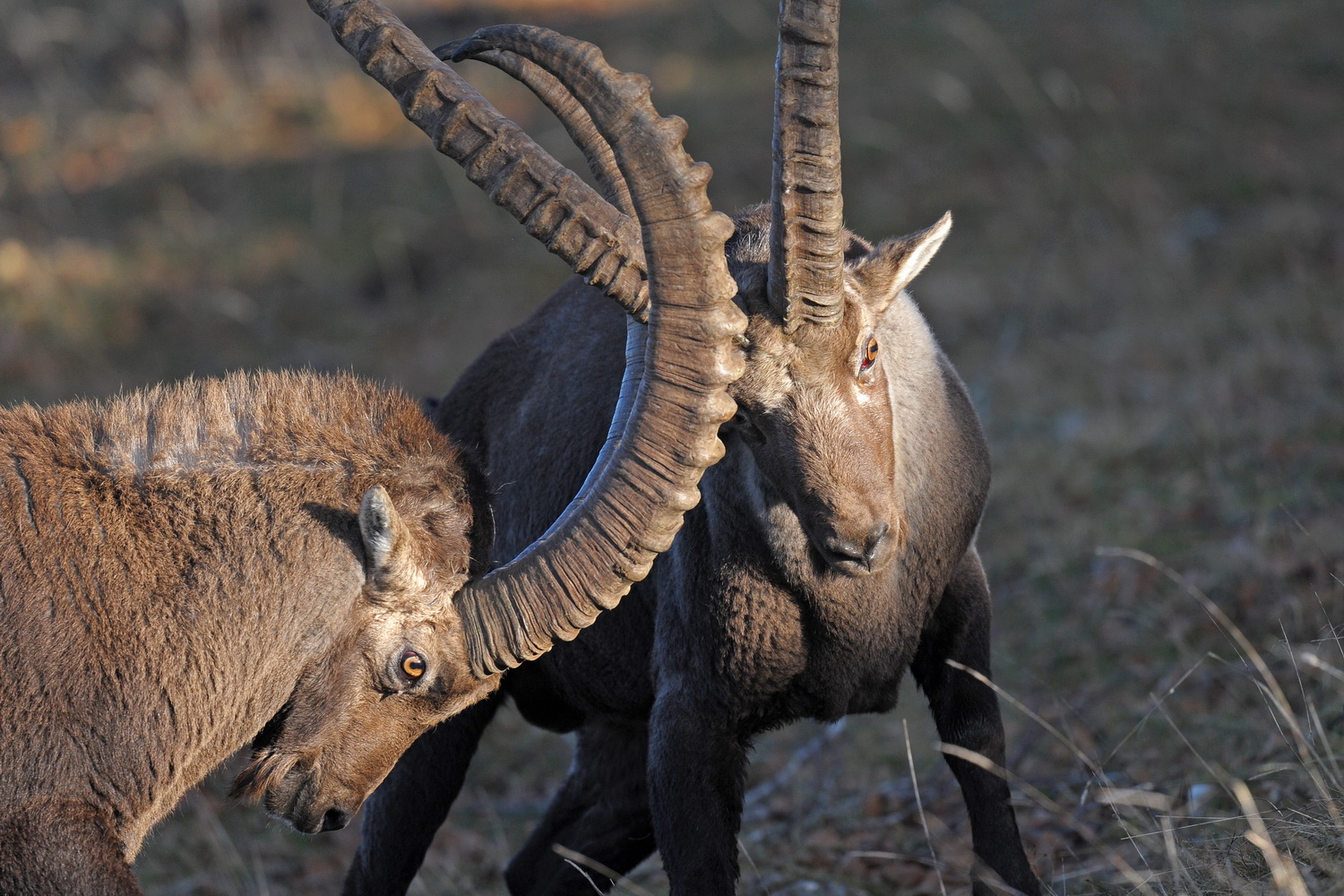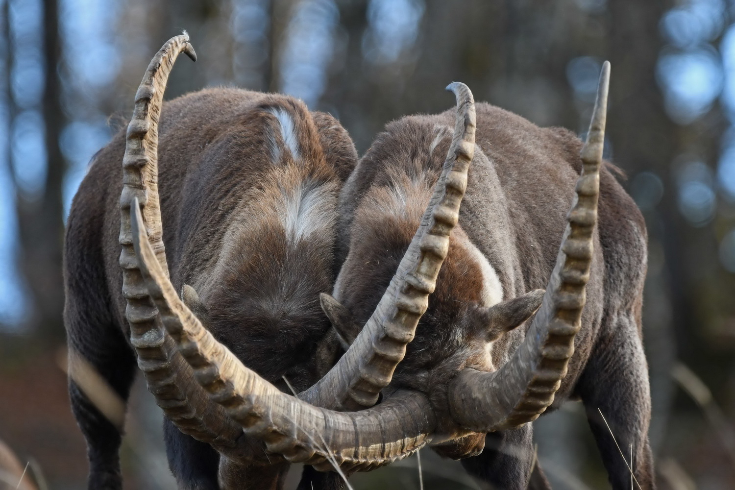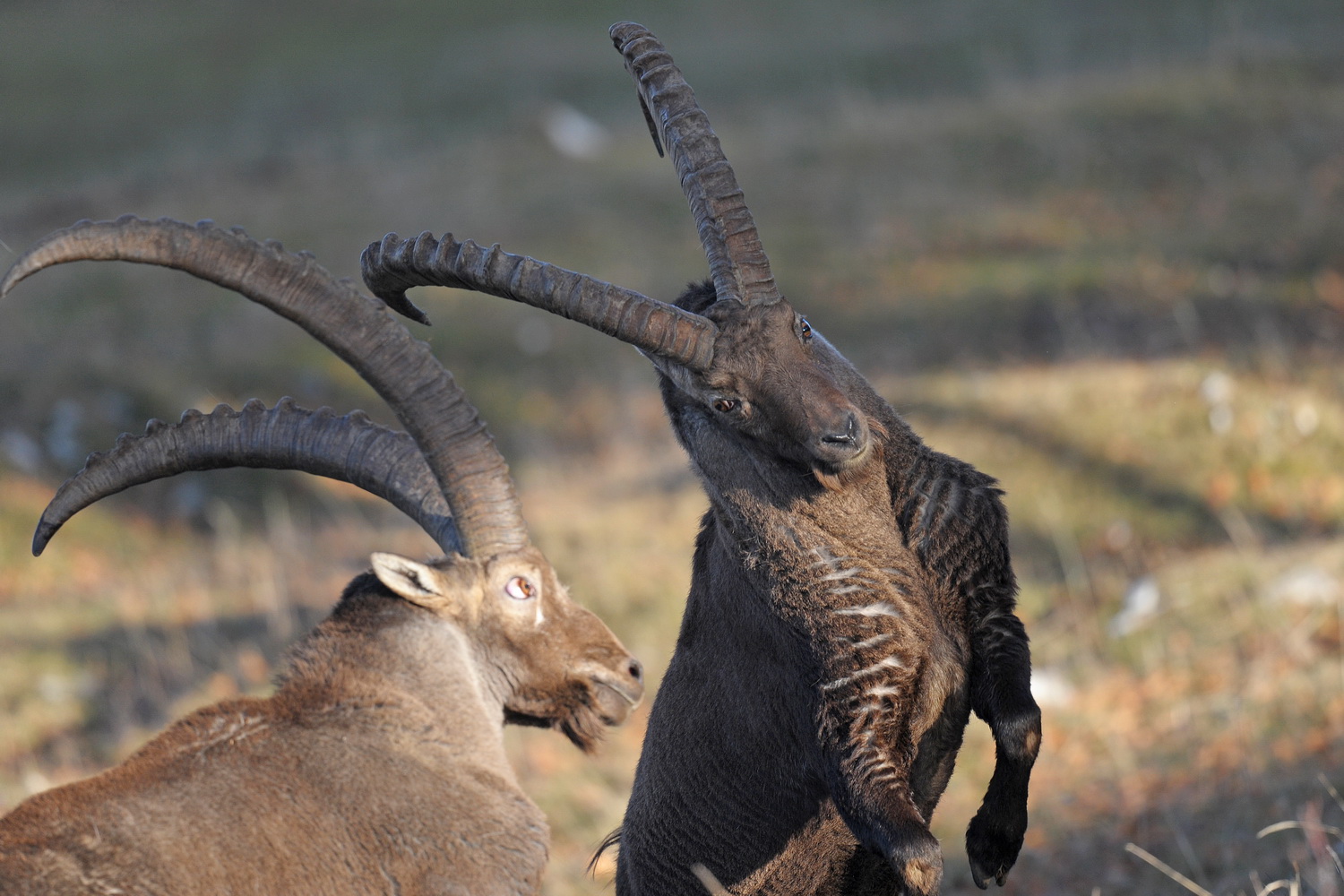 Pendant cette période, les mâles vont également se combattre en se frappant violemment à coup de cornes pour affirmer leur position hiérarchique dans la harde. Les affrontements sont impressionnants, avec des chocs de cornes qui résonnent loin à la ronde, mais qui s’achèvent le plus souvent sans blessures sérieuses.